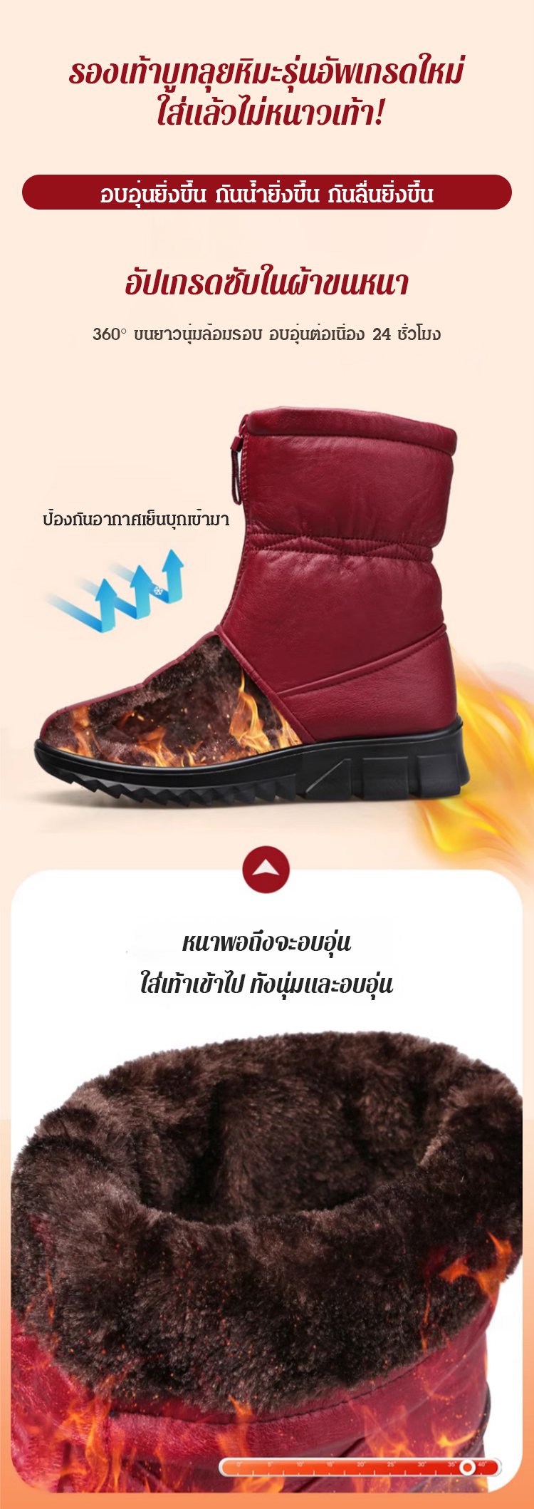 รองเท้าบูทลุยหิมะกันน้ำกันลื่นและรักษาความอบอุ่น