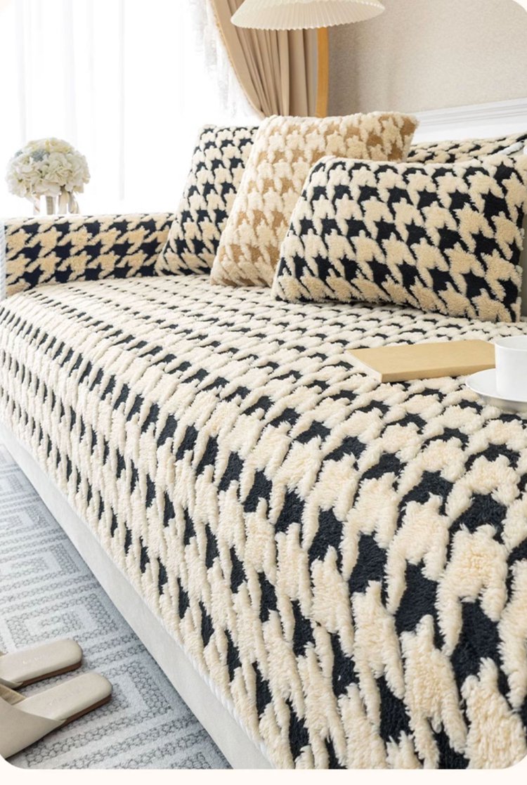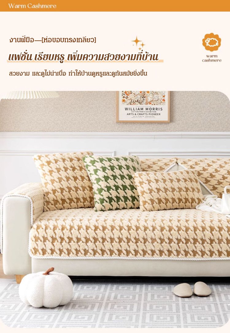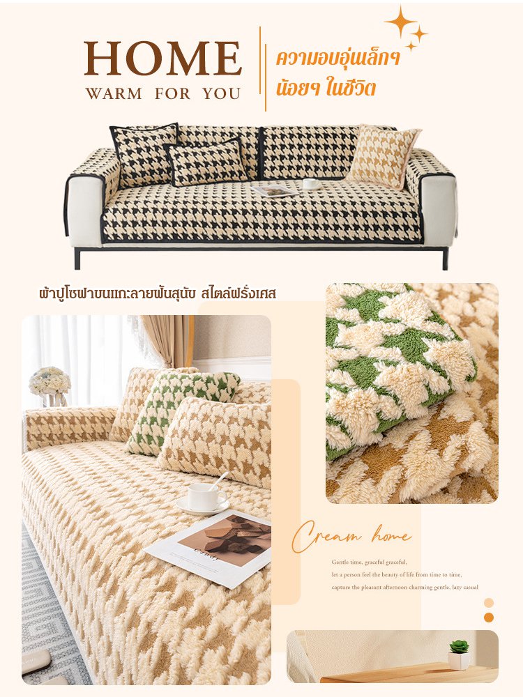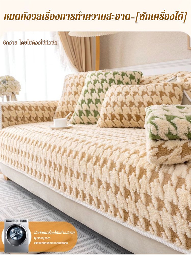 ผ้าปูโซฟาบุขนลายฟันสุนัขกันลื่น